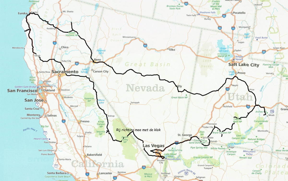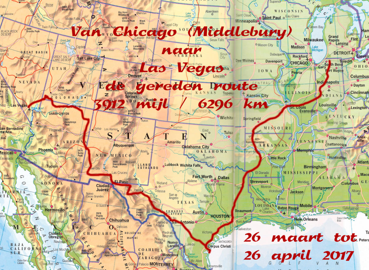 2025 april/meiWij reizen vanuit Las Vegas naar de Red Woods in Noord Californië.Via Neveda en Utah keren wij terug naar Las Vegas.FOTO serie2024 april/meiWij reizen vanuit Las Vegas naar Arizona, New Mexico en Colorado. En daarna terug naar Las Vegas.FOTO serieReisverslag2023 april/meiWij reizen vanuit Chicago naar Phoenix en bezoeken vele State Parken.FOTO serieReisverslag2022 juniWij reizen vanuit Phoenix naar New Mexico en Colorado terug naar Phoenix in Arizona. Rijden vooral veel in de bergen. FOTO serie2019 juni/juliWij reizen vanuit Las Vegas naar Utah, Colorado, Wyoming, Idaho en terug naar Las Vegas. Rijden vooral hoge bergpassen. FOTO serieReisverslag2018 april/meiWij reizen vanuit Salt Lake City naar San Francisco waar onze zoon en 2 kleinzoons met ons mee rijden naar Las Vegas en Los Angeles. Wij rijden terug naar Salt Lake CityFOTO serieReisverslag2017 maart/aprilWij halen een nieuwe camper op bij de fabriek in Middlebury en brengen deze naar Las VegasFOTO serie Reisverslag2016 april/meiWij reizen vanuit San Francisco een rondreis via Las Vegas van waar wij samen rijden met dochter, schoonzoon en kleindochterFOTO serieReisverslag