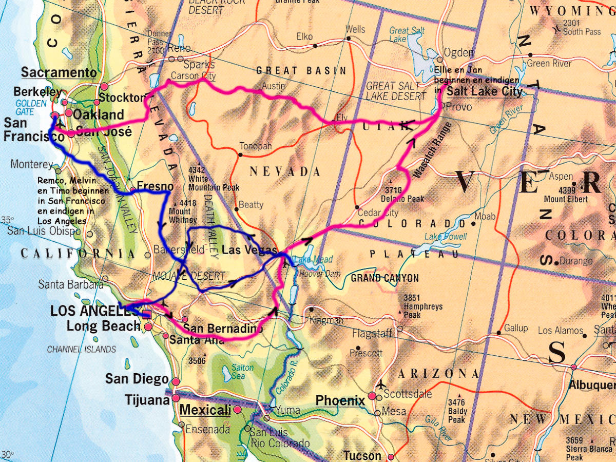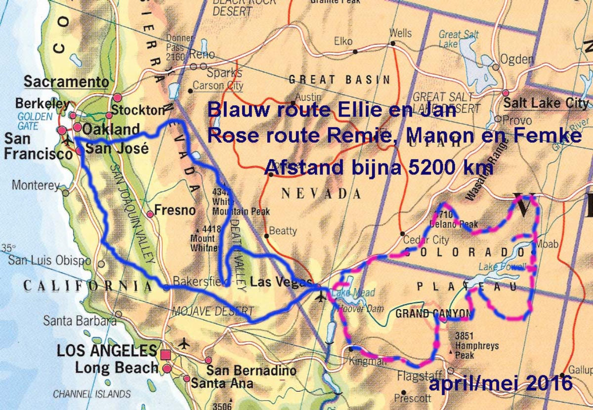 2025 april/meiWij reizen vanuit Las Vegas naar de Red Woods in Noord Californië.Via Neveda en Utah keren wij terug naar Las Vegas.FOTO serie2024 april/meiWij reizen vanuit Las Vegas naar Arizona, New Mexico en Colorado. En daarna terug naar Las Vegas.FOTO serieReisverslag2023 april/meiWij reizen vanuit Chicago naar Phoenix en bezoeken vele State Parken.FOTO serieReisverslag2022 juniWij reizen vanuit Phoenix naar New Mexico en Colorado terug naar Phoenix in Arizona. Rijden vooral veel in de bergen. FOTO serie2019 juni/juliWij reizen vanuit Las Vegas naar Utah, Colorado, Wyoming, Idaho en terug naar Las Vegas. Rijden vooral hoge bergpassen. FOTO serieReisverslag2018 april/meiWij reizen vanuit Salt Lake City naar San Francisco waar onze zoon en 2 kleinzoons met ons mee rijden naar Las Vegas en Los Angeles. Wij rijden terug naar Salt Lake CityFOTO serieReisverslag2017 maart/aprilWij halen een nieuwe camper op bij de fabriek in Middlebury en brengen deze naar Las VegasFOTO serie Reisverslag2016 april/meiWij reizen vanuit San Francisco een rondreis via Las Vegas van waar wij samen rijden met dochter, schoonzoon en kleindochterFOTO serieReisverslag